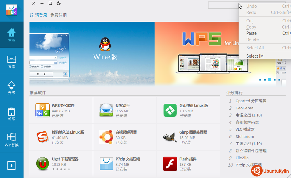 uk软件中心在搜索框里点击右键还是英文的啊…… 就是原版的软件中心在搜索框里点击右键都还是中文的啊…… 是我的机子问题还是软件问题?