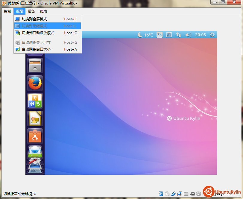 如题,虚拟机是Virtual Box,之前安装的Ubuntu10.4可以随着虚拟机窗口的大小自动调节,而优麒麟无法自动调节,相关设置项无法使用。注意“自动调整显示尺寸”