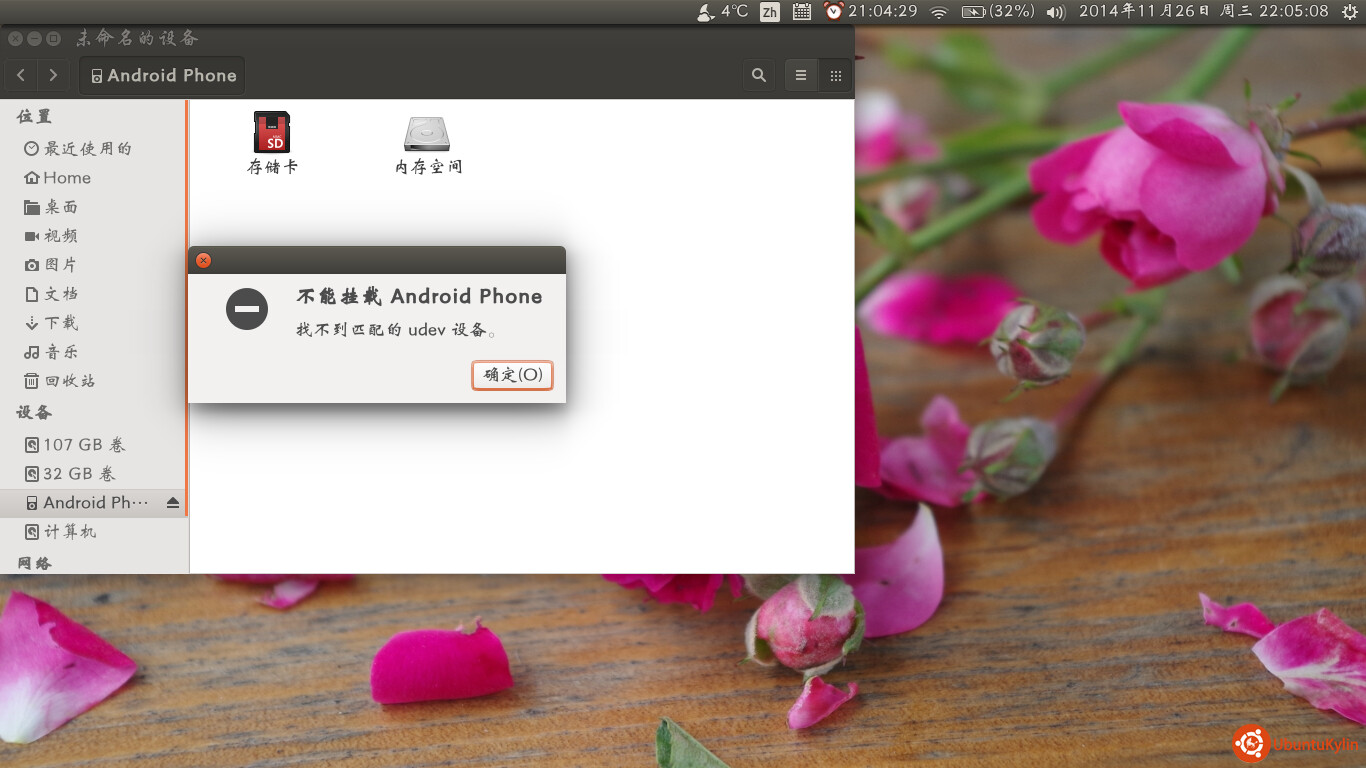 Ubuntu Kylin 14.10用数据线连不了手机 会出现一下几种情况