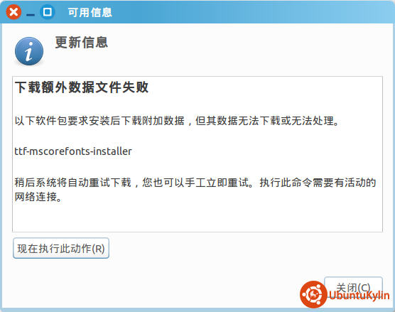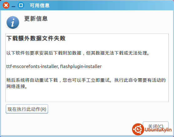在无网络的情况下用deb包安装UK音视频解码器后,会出现图1中的弹窗提示。而这个deb包是我在有网络的情况下用UK软件中心安装的,安装后不会出现弹窗。我觉得奇怪的是在无网络的情况下用终端命令dpkg安装后就会出现这个弹窗,而以前的UK13.10不会出现这个问题,这个问题是从UK14.04开始出现的,请问下有人知道这是为什么吗?