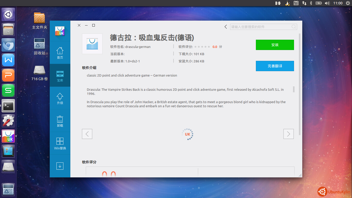 新版本UK系统的软件中心提供了丰富的游戏软件和下载工具。
