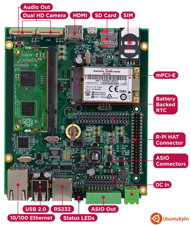 MyPi 还将配备一个 mini-PCIe 插槽,据说“只支持 USB,以及只适用 mPCIe 形式的调制解调器”。还带有一个 SIM 卡插槽。板上还有双标准的树莓派摄像头接口,一个音频输出接口,自带备用电池的 RTC,LED 灯。还支持宽范围的 9-23V 直流输入。